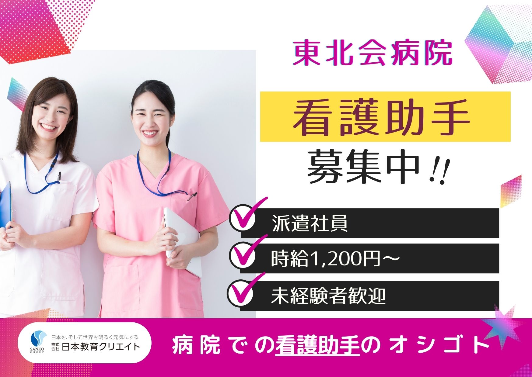 医療法人東北会 東北会病院の求人/仙台市 青葉区/看護助手/派遣