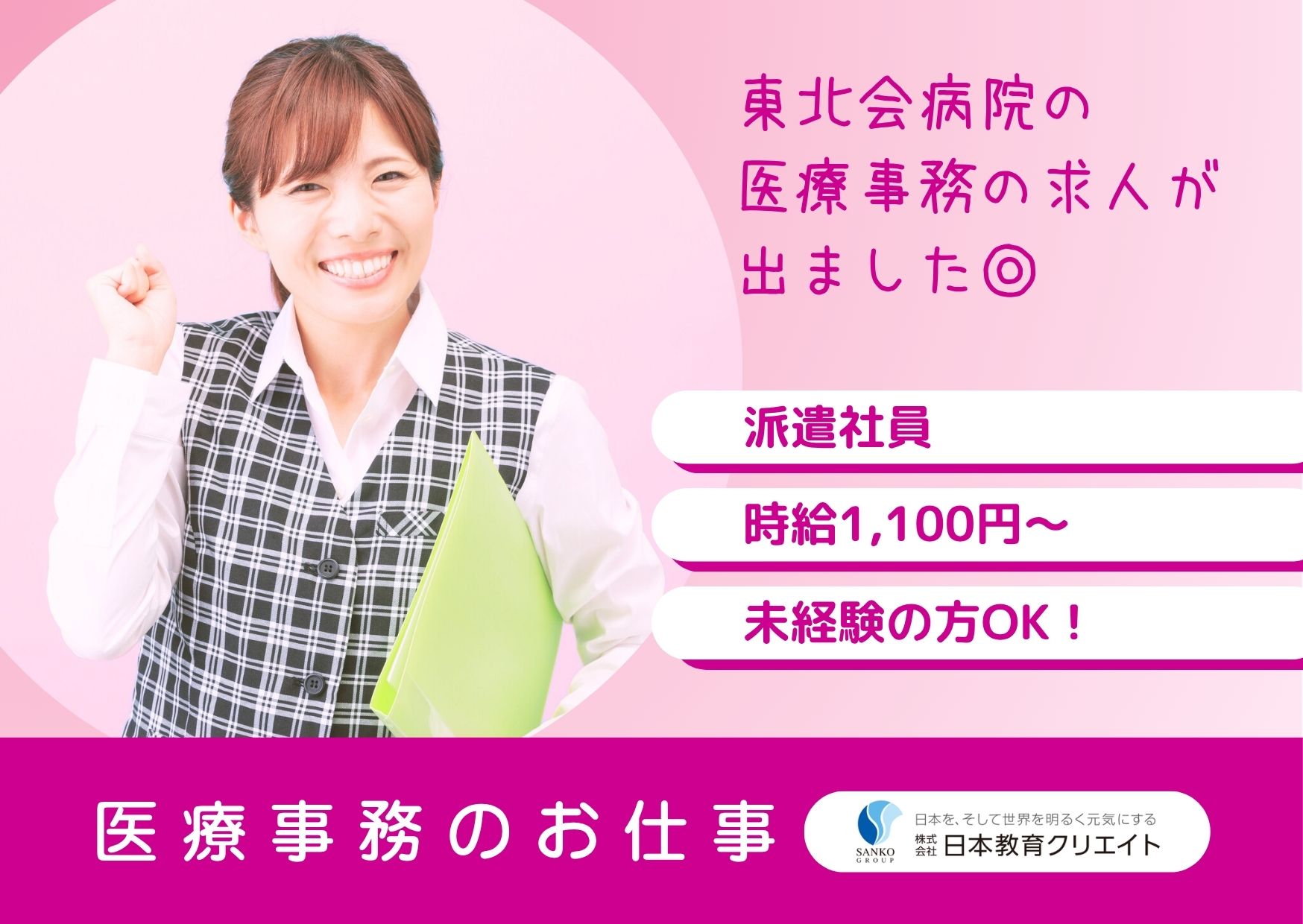 医療法人東北会 東北会病院の求人/仙台市 青葉区/医療事務(受付・クラーク)/派遣