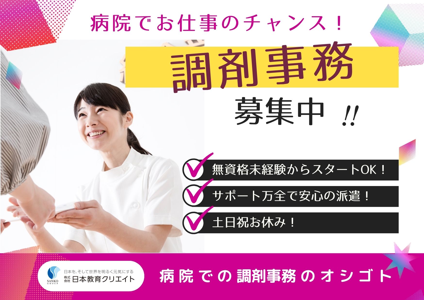 調剤事務のお仕事を始めたい方、病院勤務を始めたい方に