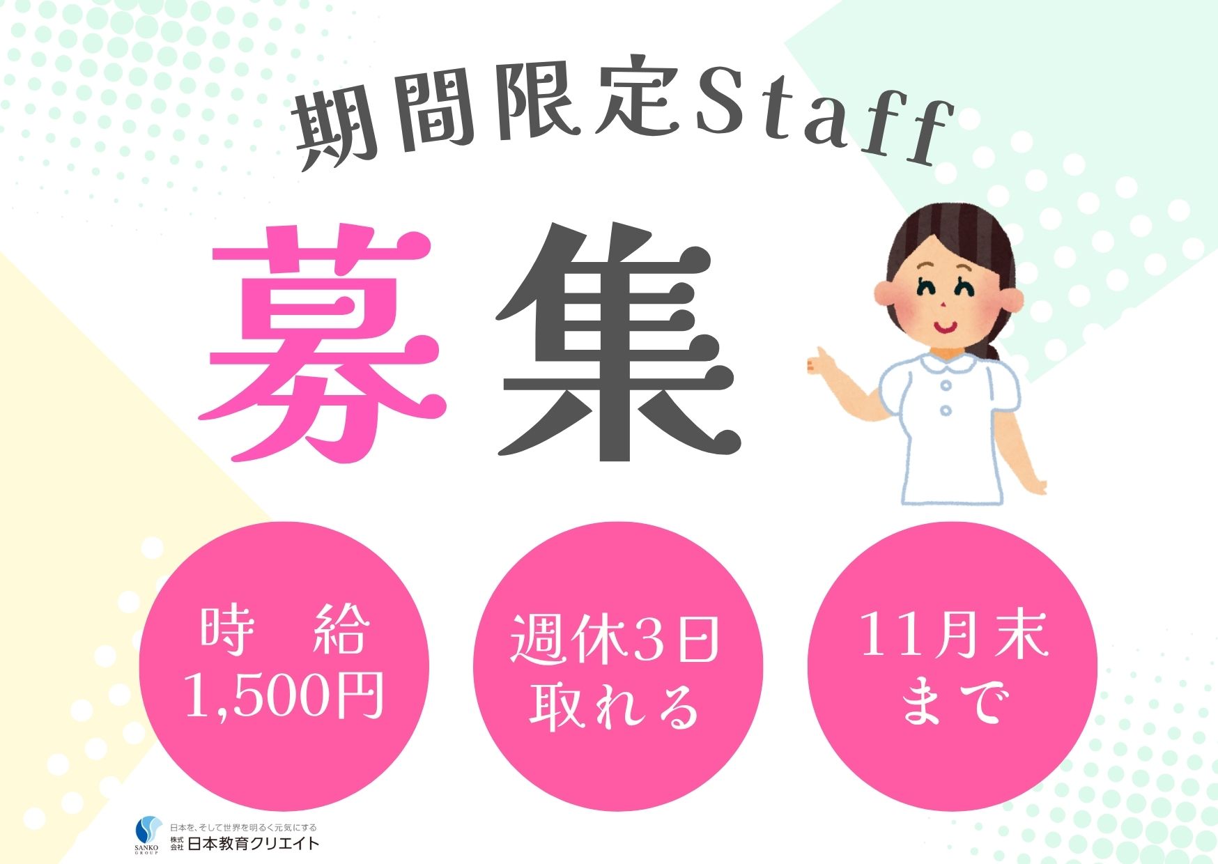駐車場無料で車通勤も安心・時給1,500円スタートで稼ぎやすい・9~11月の3ヶ月限定で経験を積める・木日祝休みでプライベートと両立OK