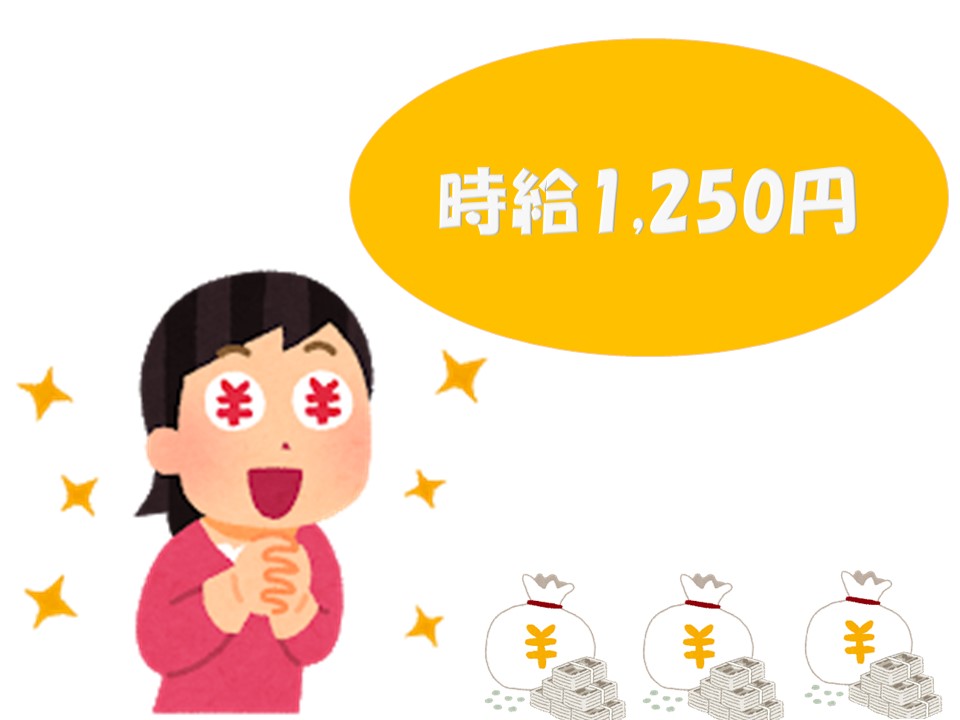 - 時給(総額) 1,250円~1,300円