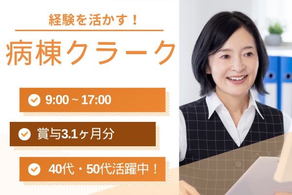 【桜川駅徒歩2分】賞与3.1ヶ月&育児・介護休業あり*経験活かして安定の病棟クラーク*年休115日◎