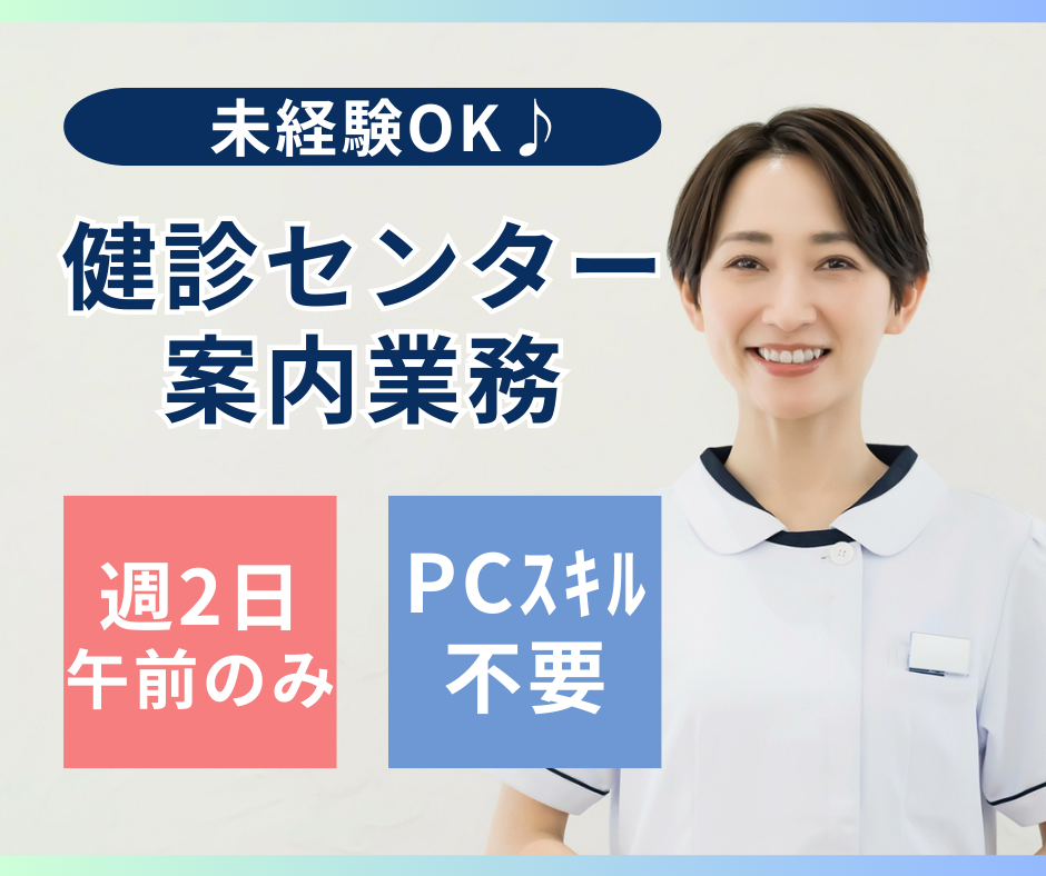 週2日・午前のみ!未経験OK★土日祝休み&扶養内◎pcスキル不要の健診案内