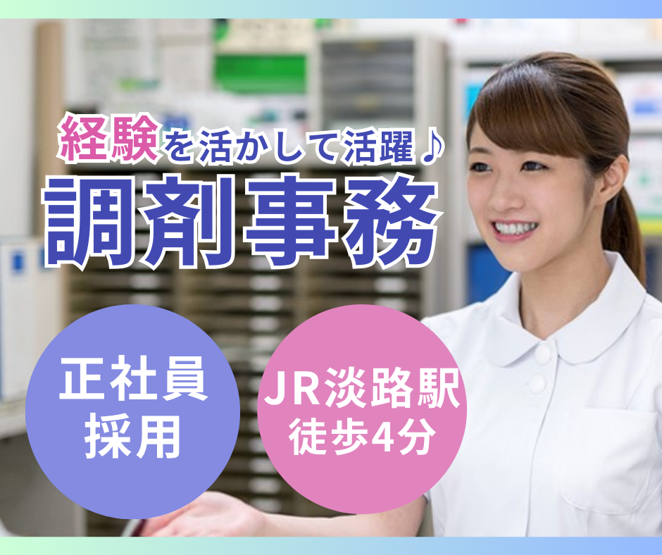 【JR淡路駅徒歩4分】経験者歓迎!日祝休み&残業少なめ*調剤薬局での正社員事務