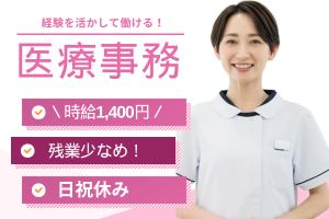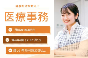 《駅チカ1分&マイカー通勤OK》医療事務経験者歓迎・賞与3.9ヶ月/福利厚生充実・日祝休み!