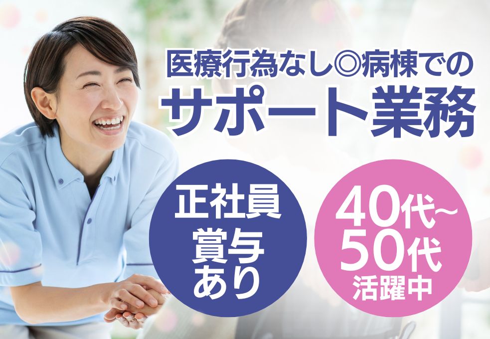 【40~50代多数活躍中】無資格・未経験から正社員へ☆彡やりがいも働きやすさも叶う病棟サポート♪