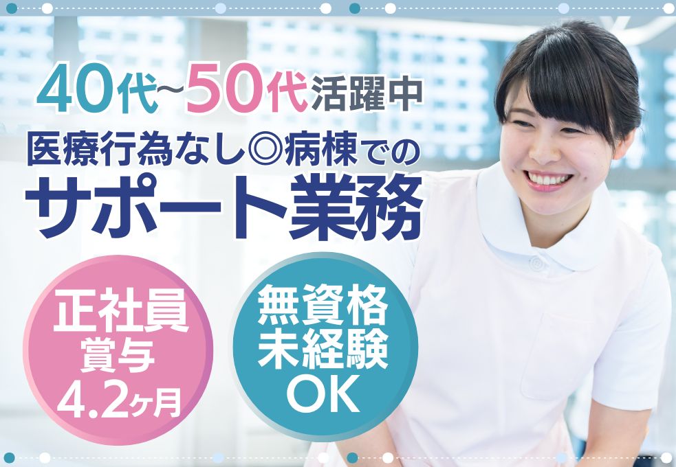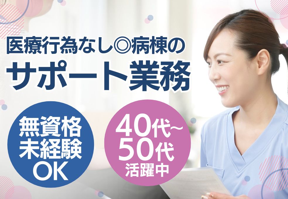 【未経験・ブランクOK】40~50代活躍中♪時給1,300円~&残業ほぼなし!病院で“ありがとう”がもらえるサポートスタッフ☆