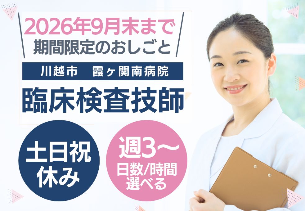 【週3~5日で相談可◎週休3日制もOK】川越・上尾・さいたま市方面から車通勤が便利◎\定員になり次第締切!/安定の大学病院で働けるレア求人です★エントリーはお早めに!