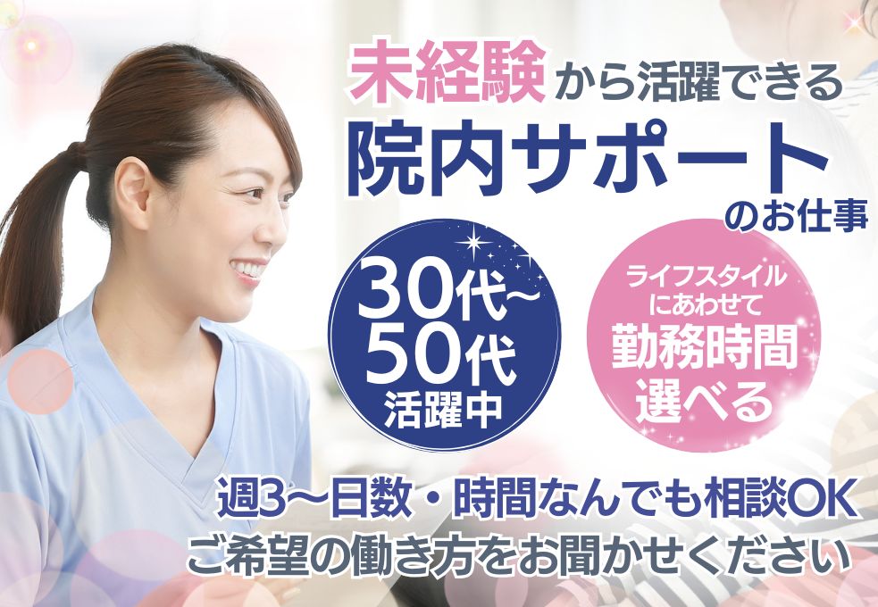 【40代~60代の未経験スタート多数】夕方だけの短時間♪覚えやすい院内サポート/週2~扶養内パート★職場見学OK