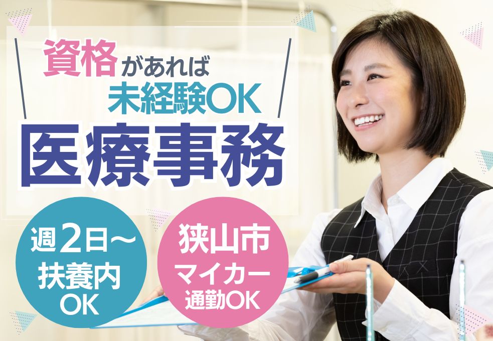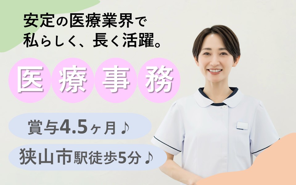 \正社員×賞与4.5ヶ月×狭山市駅チカ5分/経理事務経験を活かして安定の医療業界へ☆頼れる先輩もそばにいます◎