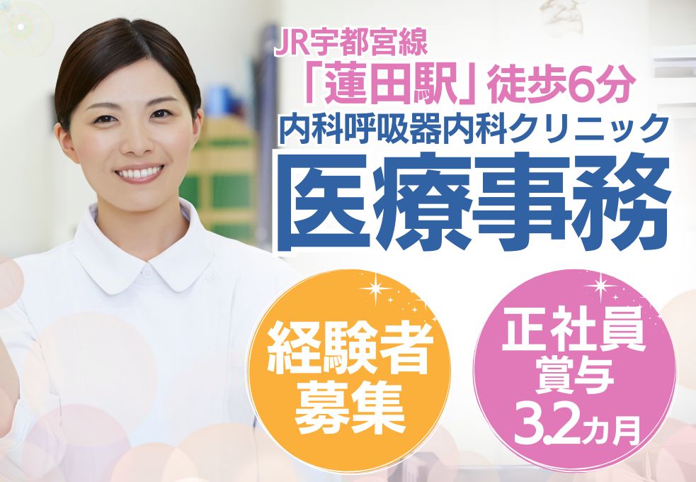 《蓮田市》駅チカ&車通勤OK☆経験者歓迎の医療事務*完全週休2日制&月給21万円~賞与3.2ヶ月の安定ワーク♪