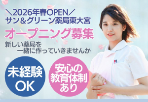 【東大宮駅徒歩2分◎オープニングスタッフ募集】未経験から正社員デビュー応援!医療業界で“手に職”つけてずっと活躍できる調剤事務♪