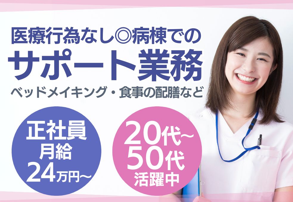 【越谷エリア×40代・50代も活躍中】未経験から始める病棟サポート◎医療の現場で“ありがとう”がやりがいに繋がるお仕事です☆