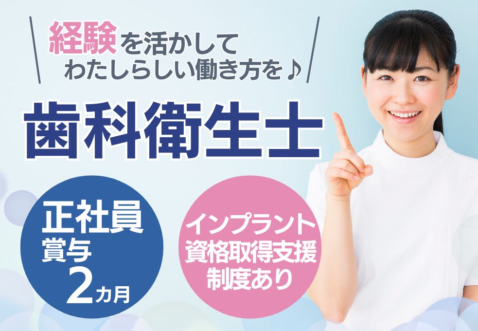 《歯科衛生士*即戦力募集》【インプラント認定衛生士も目指せる】診療時間内研修×資格支援あり♪