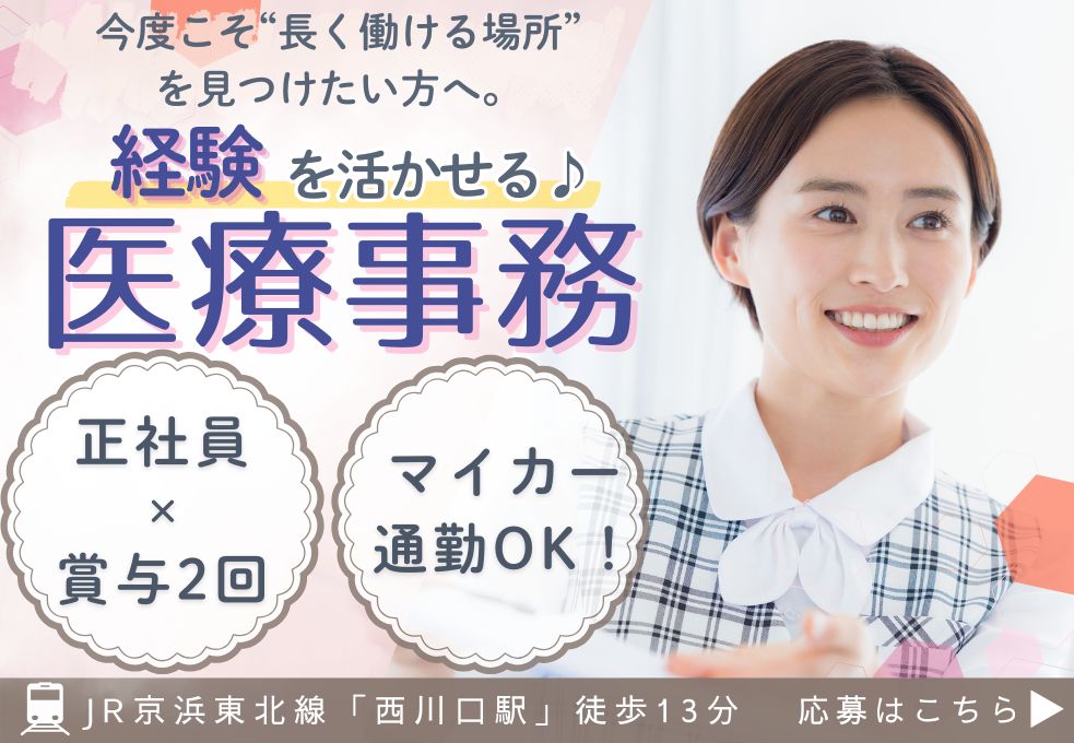 ≪医療事務経験者歓迎≫今度こそ“長く働ける場所”を見つけたい方へ。落ち着いた環境で再スタート♪