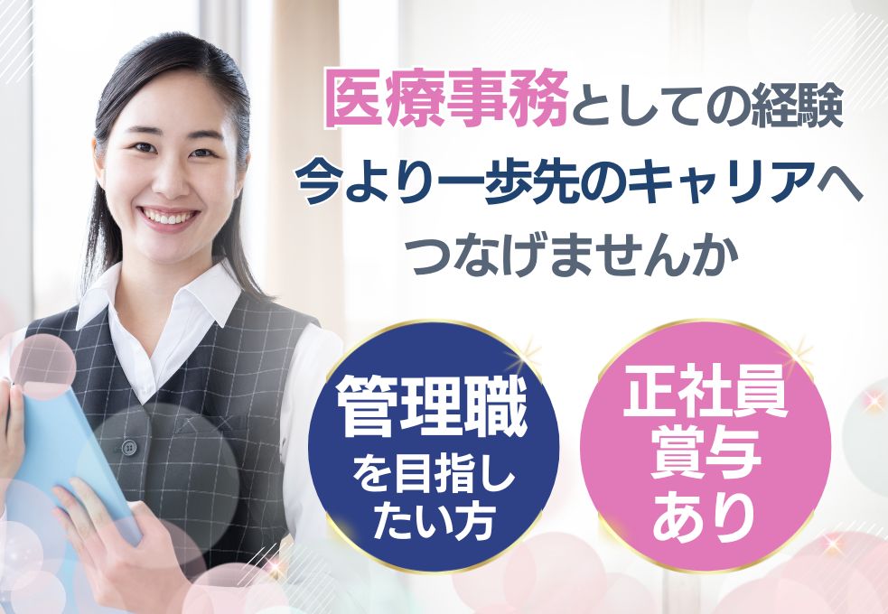 医療事務の経験を、次のステージへ!将来はマネジメントにも挑戦できる医療事務スタッフ募集◎