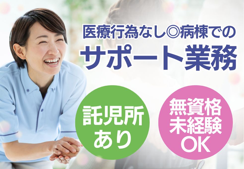 【日勤のみOK×完全週休2日制】未経験から“医療のしごと”へ♪ 託児所ありで子育て世代も安心して続けられる看護助手スタッフ募集◎