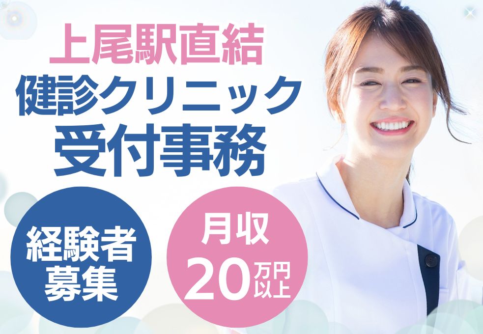 【上尾駅直結×健診クリニック】駅ビル内で通勤ラクラク♪キレイな環境で受付・健診事務*残業ほぼなしでプライベートとの両立も◎