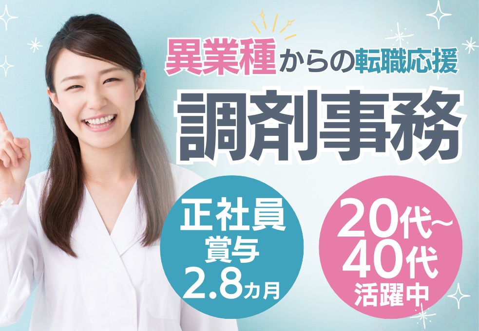 \2025年10月新規オープン/未経験から調剤事務デビュー!月給23.9万円~*賞与2.8か月*20代~40代活躍中