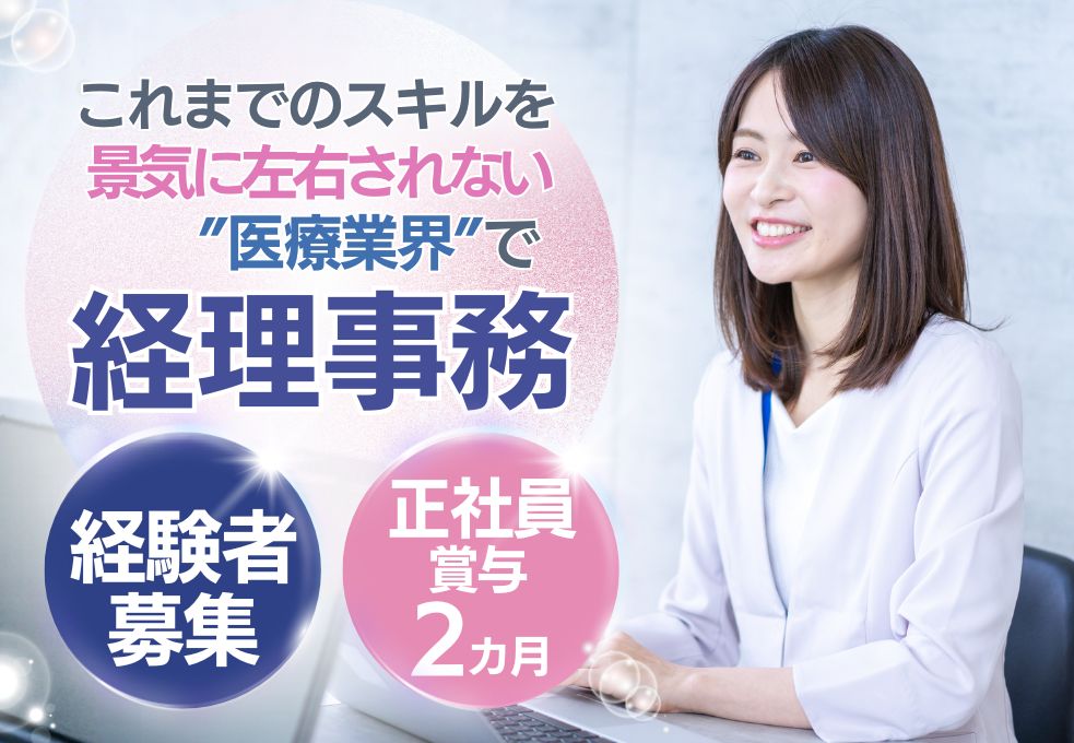 【駅チカ×高待遇】経理経験を医療業界で活かそう♪ 月給27万円+賞与2ヶ月分の正社員*経理スタッフ募集