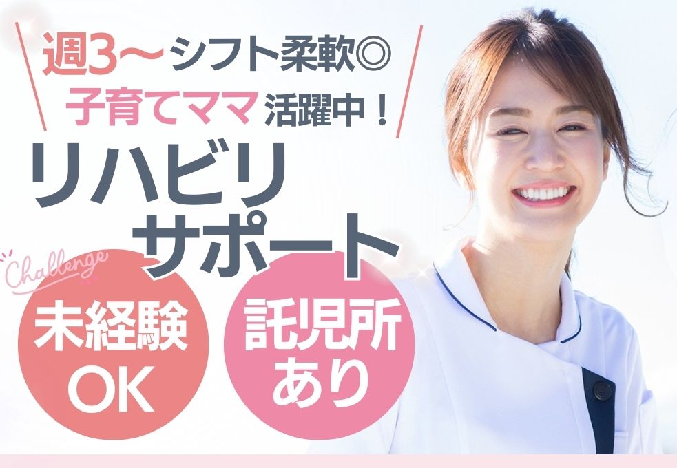【未経験・ブランクOK】リハビリ中心のクリニックでサポート業務*週3日~シフト柔軟★託児所あり★子育て世代も活躍中