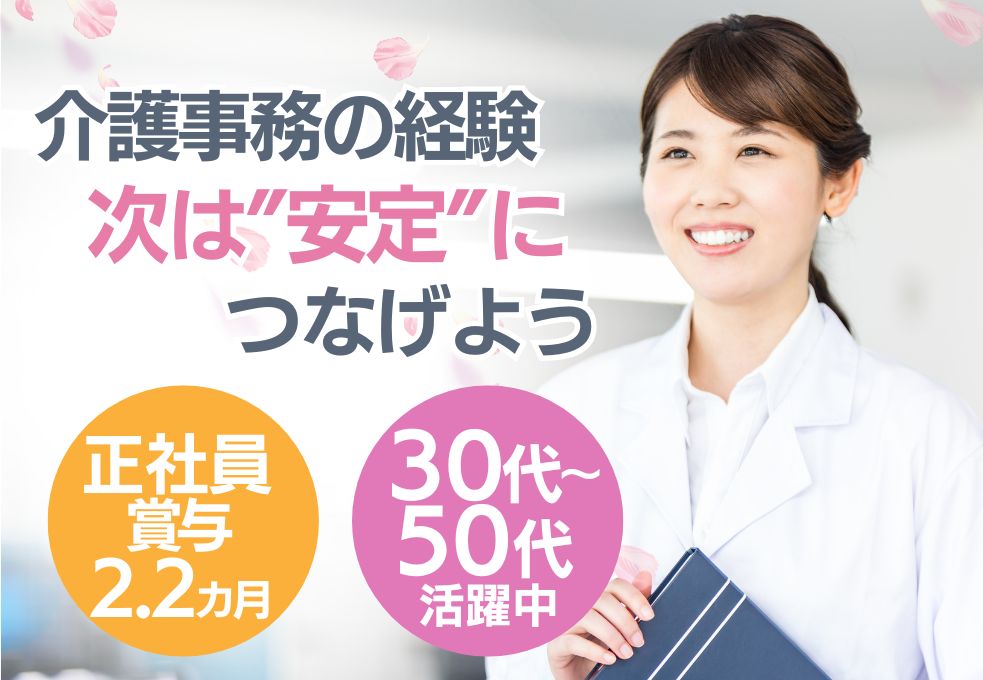 【戸田公園駅・西川口・蕨駅からアクセス抜群◎】経験を活かせる介護事務/賞与2.2ヶ月/日祝休み完全週休2日制/30代~50代幅広く活躍中