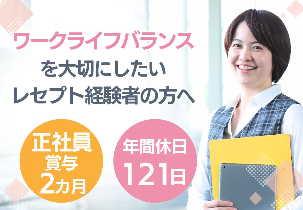 転職するなら“働きやすさ”も大切に♪賞与2ヶ月×年間休日121日×永年勤続休暇あり|医療事務正社員