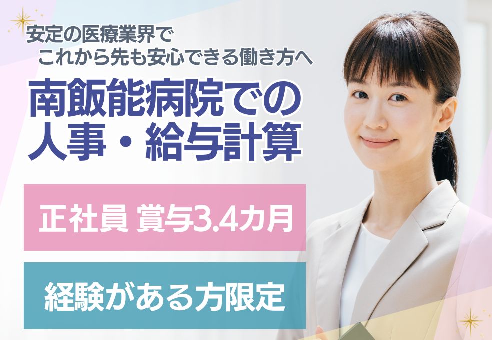 今の働き方に不安を感じたら「安定で選ぶ転職」へ☆賞与3.4ヶ月*医療業界で働く!病院の人事・労務スタッフ
