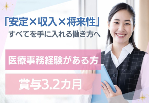 転職するなら“働きやすさ”も大切に♪賞与2ヶ月×年間休日121日×永年勤続休暇あり|医療事務正社員