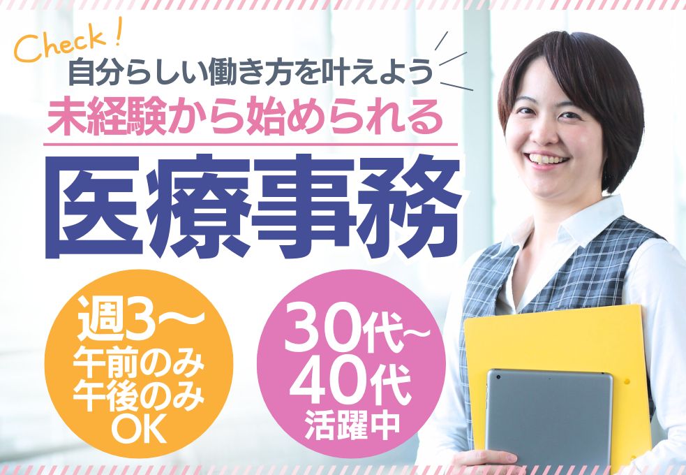 《午後の時間を有効活用♪週3日~》扶養内でムリなく働ける♪未経験歓迎の医療事務パート★