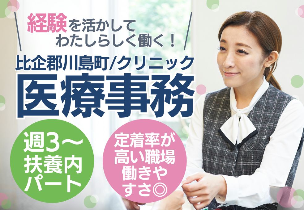 【若葉駅・東松山エリア】\週3日~OK×扶養内勤務可!/働きやすさで選ばれる人気クリニックで、医療事務パートスタッフ募集♪