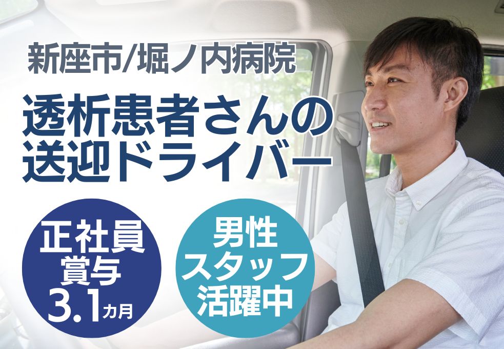【日祝休み×賞与3.1ヶ月】運転スキルを、医療のチカラに。透析患者さんを支える送迎ドライバー募集!