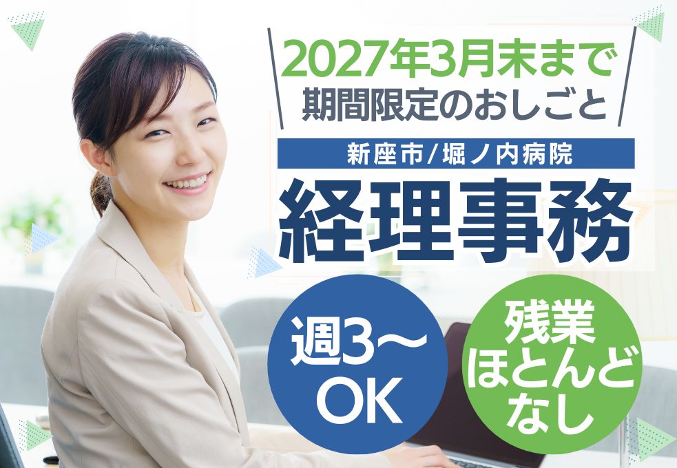 【2027年3月末まで期間限定】経理スキルを活かして病院事務にチャレンジ★週3日~&家庭と両立も安心!