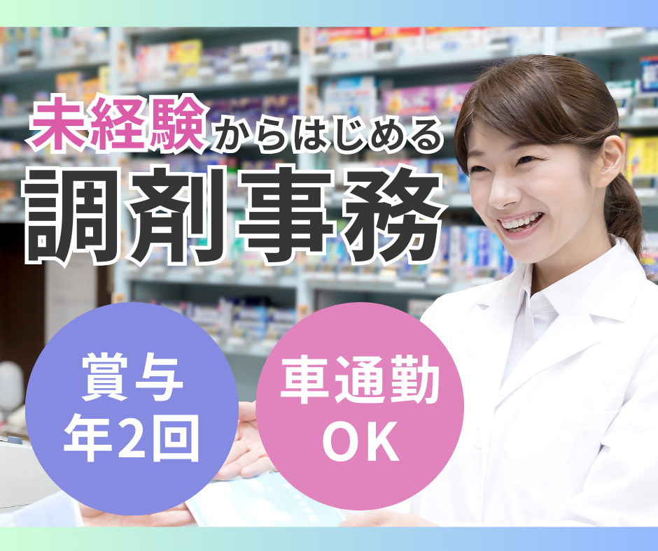 未経験歓迎!正社員の調剤事務スタッフ募集★マイカー通勤OK&賞与年2回あり