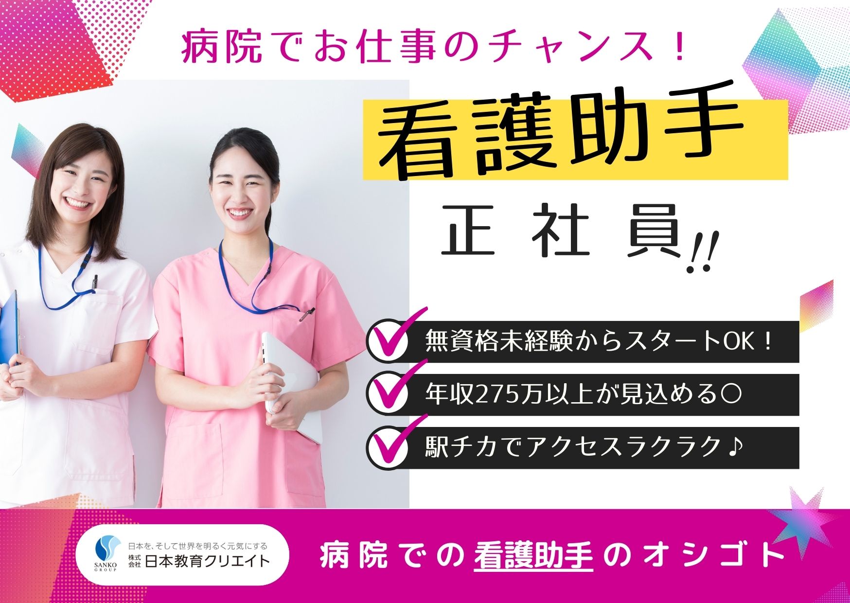 賞与が付いて安定収入・駅チカでアクセスラクラク・駐車場代は病院負担