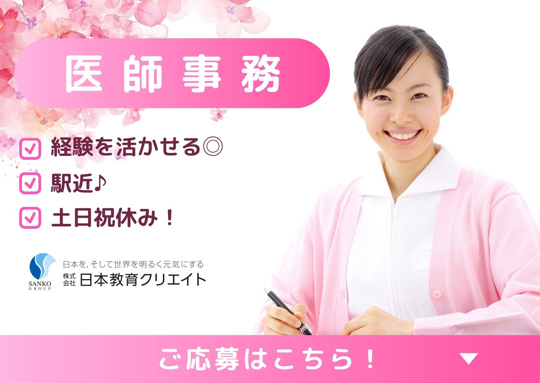 \日勤×週5日/日祝休みで私生活も充実◎経験活かせるクリニック医療事務・サポートあり*車通勤OK(駐車場あり)