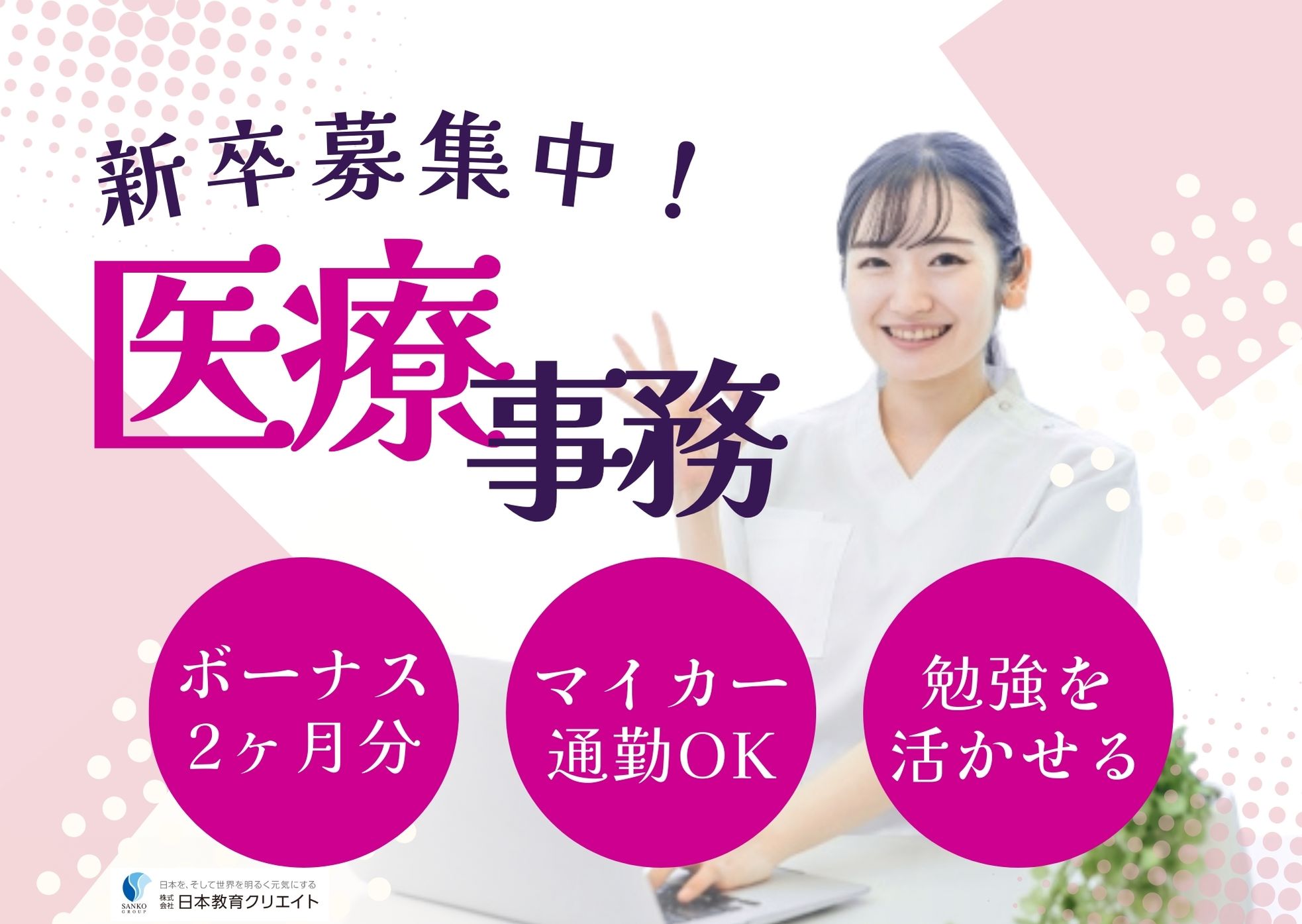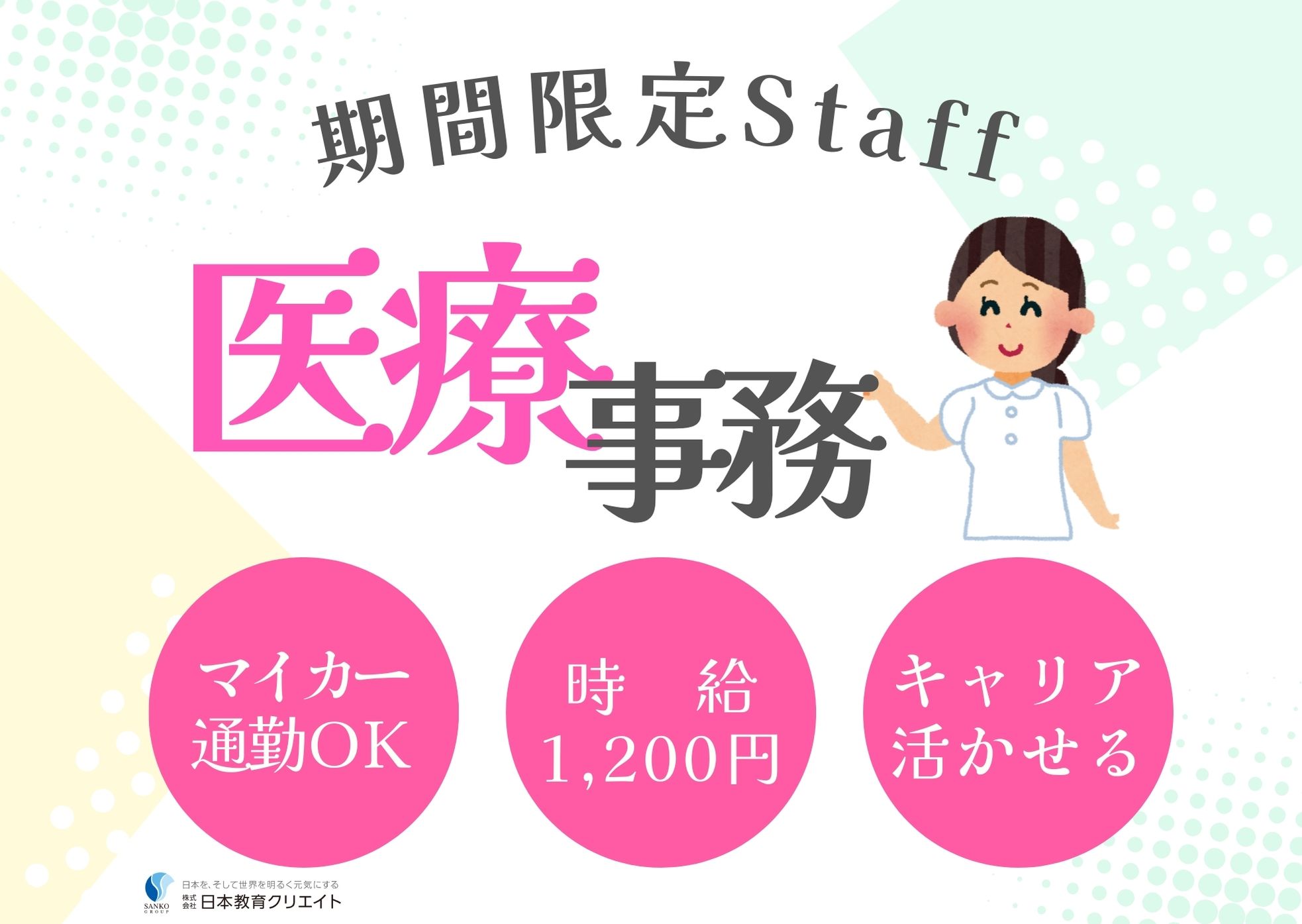 3月までの期間限定で経験を積める・車通勤OK・フォロー体制あり・医療事務の資格があれば未経験OK・今までのキャリアも活かせる