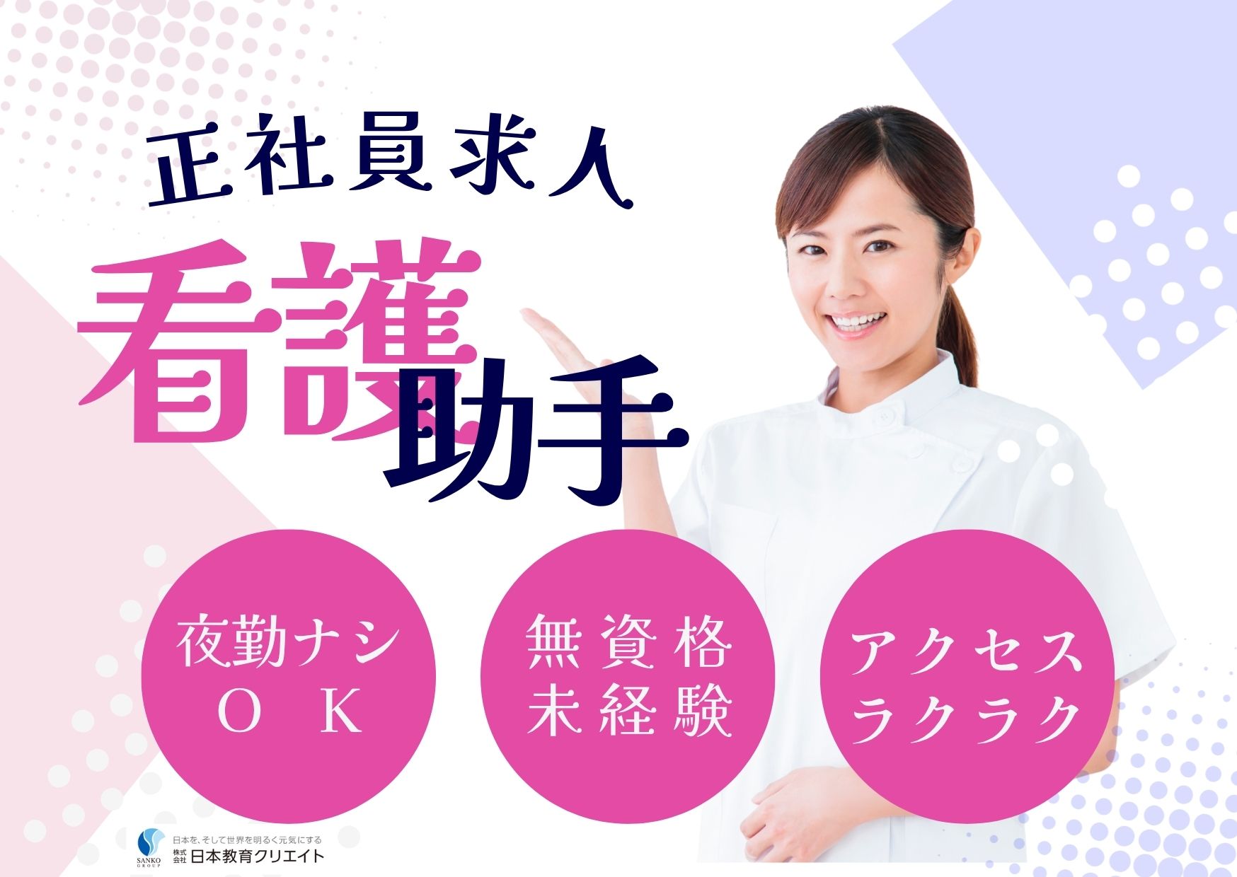 正社員勤務で安定してお仕事OK・賞与がついて安定収入見込める・公共交通機関でアクセスしやすい・残業少なめで定時帰りしやすい・プライベートと両立しやすい・夜勤でより高収入