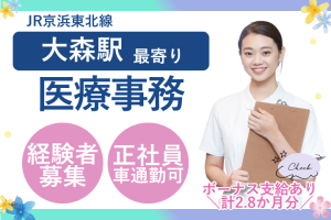【大森駅】正社員の医療事務◆賞与2.8カ月分&年休121日◎福利厚生充実!