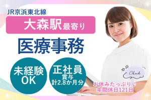 【大森駅】未経験歓迎!正社員の医療事務◆賞与2.8カ月分&年休121日◎福利厚生充実!