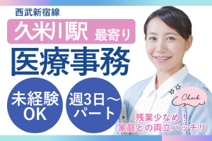 【久米川駅チカ・週2~3日】経験活かして活躍◎扶養内で無理なく働ける医療事務☆土日祝休み