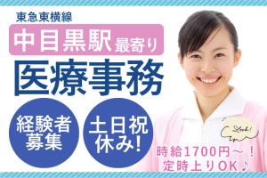 【中目黒駅7分】土日祝休み・残業ほぼなし!40代活躍中の医療事務*経験者歓迎♪
