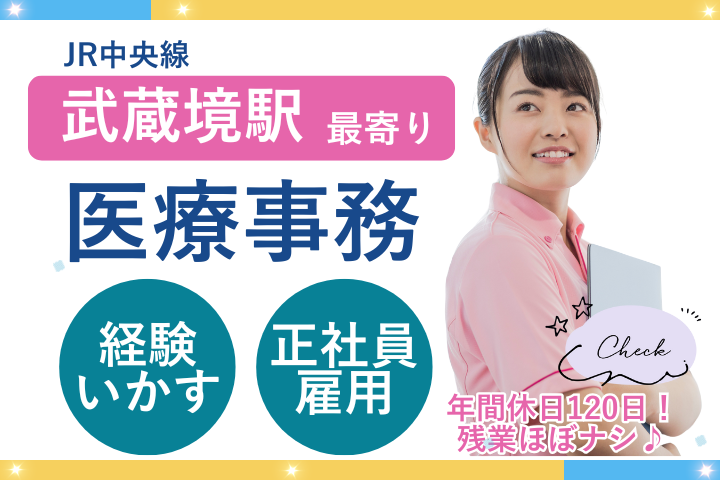 未経験から月給20万円+賞与4ヶ月!三鷹駅チカ×長期安定の医療事務★安心の福利厚生あり◎