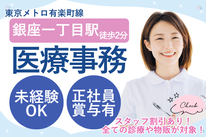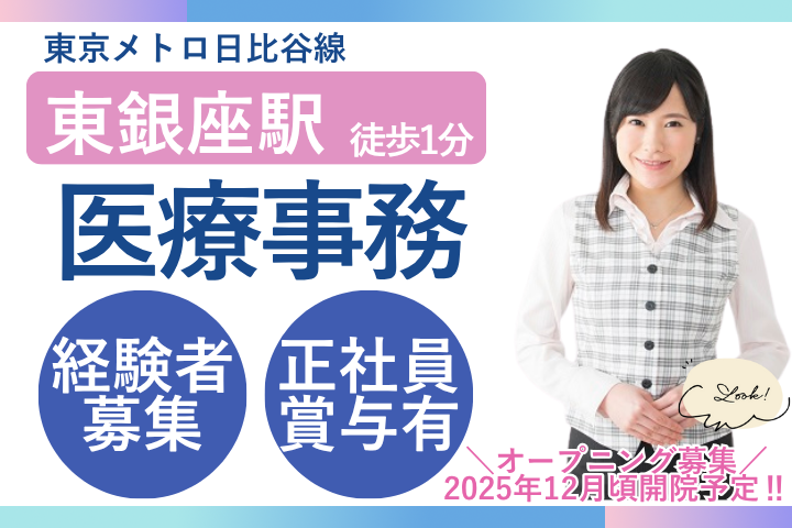 【銀座駅徒歩5分】2025年12月中旬~2026年1月新規オープンのクリニック受付◆経験を活かして正社員へ