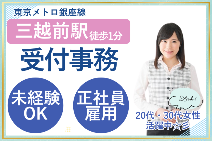 【日本橋駅徒歩2分】経験者歓迎・月給28万円からスタート!クリニック受付医療事務*土日祝休み