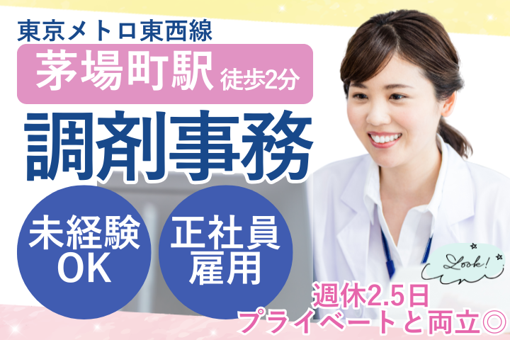 【茅場町駅2分】未経験OK*正社員調剤事務◎週休2.5日でプライベートと両立◎福利厚生充実★