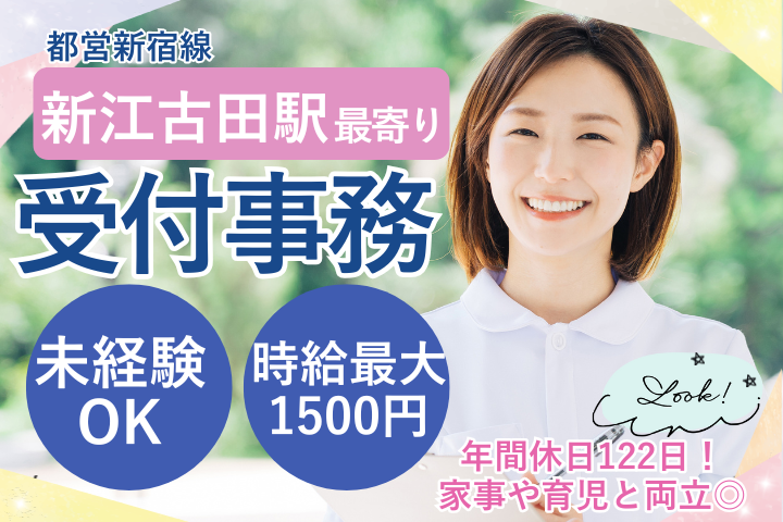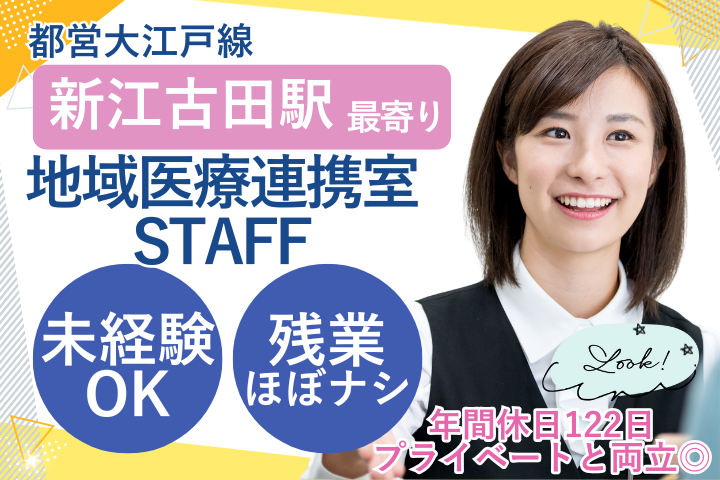【新江古田駅徒歩圏内】未経験OK!17時までの勤務・残業ほぼナシ◎年間休日122日!総合病院で受付事務デビュー♪