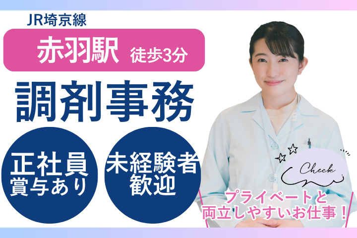 【赤羽駅】未経験でも安心!調剤事務で正社員デビューしませんか?あなたの才能を活かすチャンス♪