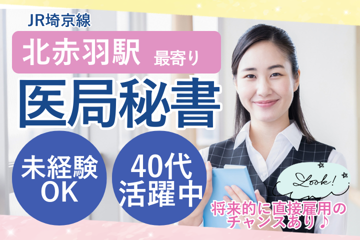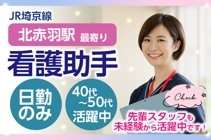 【赤羽駅】地域で信頼される総合病院での患者様サポートのお仕事?彡40~50代未経験からのスタートも応援します!長く安定してお勤めできる医療業界へキャリアチェンジしてみませんか?