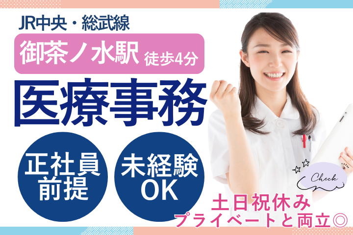 資格を活かして未経験から医療事務デビュー!御茶ノ水駅4分◆土日祝休&賞与あり*正社員登用前提